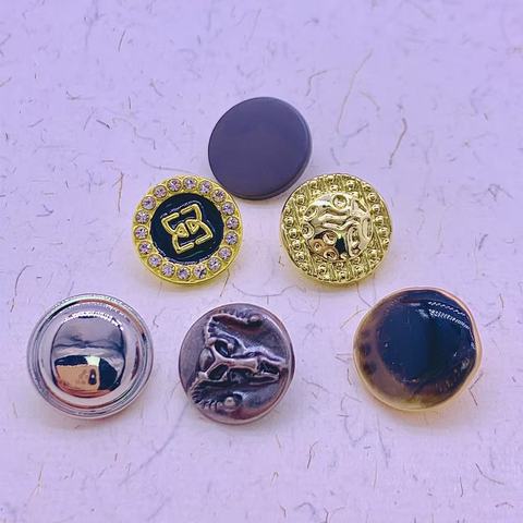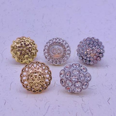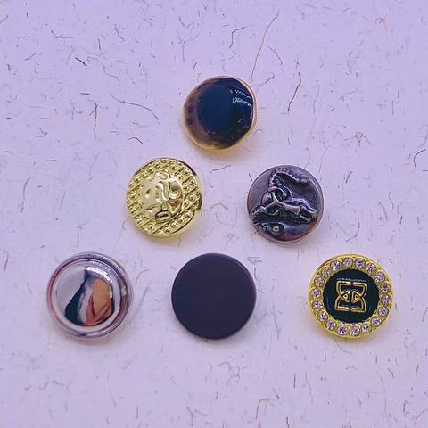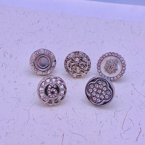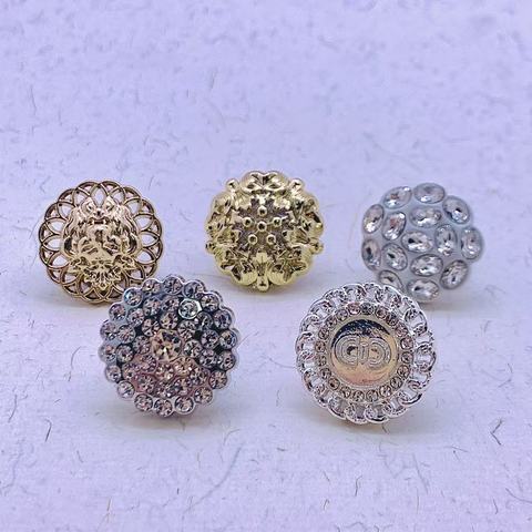כפתור מעוצב בסגנון וינטג' מסגסוגת אבץ עם לוגו מותאם אישית של CF Factory, משובץ באבני חן ופנינה, עם גזע, למעילים ובגדים.